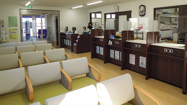 待合スペースは背もたれ付きの椅子がありますので、ゆっくりとお待ちいただけます。 -